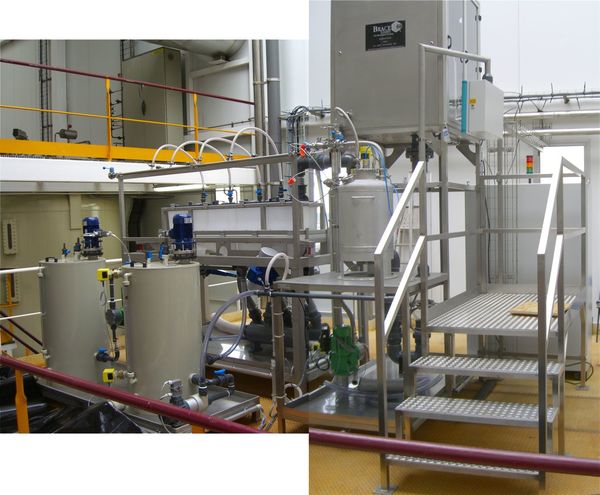 Für Produktionsmengen jenseits der Möglichkeiten der Spherisator Serie bietet BRACE Produktionsanlagen im Bereich bis 500 L/h als Pilotanlagen an. Die Pilotanlagen bestehen aus einer Produktionslinie mit einem oder mehreren Produktionsdüsenköpfen. Die Anzal der Vertropfungsköpfe wird dabei nach Durchsatz, Material und Partikelgröße passend gewählt um möglichst viele Komponenten zusammenzufassen. Solcherart ist die Pilotanlage für viele Anwendungen als Produktionsanlage geeignet um hochwertige Mikrokugeln und Mikrokapseln kontinuierlich zu fertigen. Durch die weitgehende Automatisierung der Steuerung kann die Pilotanlage unter vollkontinuierlichem 3-Schicht Betrieb gefahren werden um eine optimalte Anlagenauslastung zu erzielen. Die Pilotanlagen werden in enger Zusammenarbeit mit unseren Kunden zusammengestellt um vorhandenes Know-How mit einzubinden und neues Know-How sach- und termingerecht kundenseitig einzubinden. BRACE bietet neben den Core-Units (Vertropfung) auch Up- und Down-stream Komponenten an, die somit optimal in die Fertigung integriert werden können.