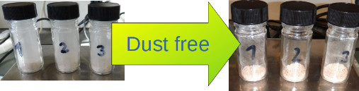 Viele Herstellverfahren produzieren neben der gewünschten Partikelgröße auch einen erheblichen Feinanteil. Oder das resultierende Material ist spröde und erzeugt bei der Handhabung Bruch und Stäube. Meistens ist die Ursache entweder eine Hohlstruktur („Blowhole“) oder die unregelmäßige Form.