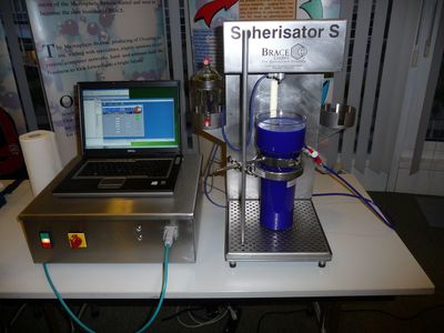 The Spherisator S is very configurable to fullfill the individual needs. It can be equipped with a variety of nozzle types, feed vessels and collection tanks. Even a heating chamber is available, that can be equipped with a laboratory size cooling tower. It is easily possible to develop Microsphere and Microcapsule formulations on the Spherisator S with all the material range available. Optimized and certified materials for matrix or core-shell encapsulation can be purchased at BRACE.